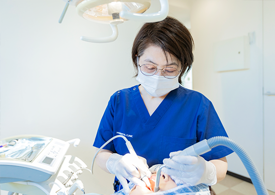 歯科医師に質問したいと思っても、気持ちの面で患者さまと歯科医師の距離が遠いと、質問しづらくなってしまうのではないでしょうか。そのため当院は、皆さまにどのようなことでも気兼ねなくお尋ねいただけるよう、質問しやすい環境を整えることと、患者さまと近い距離感で接することを心がけています。